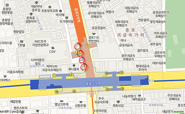 從鐘路上街站2號或10號出口出站後往前走的大馬路上
